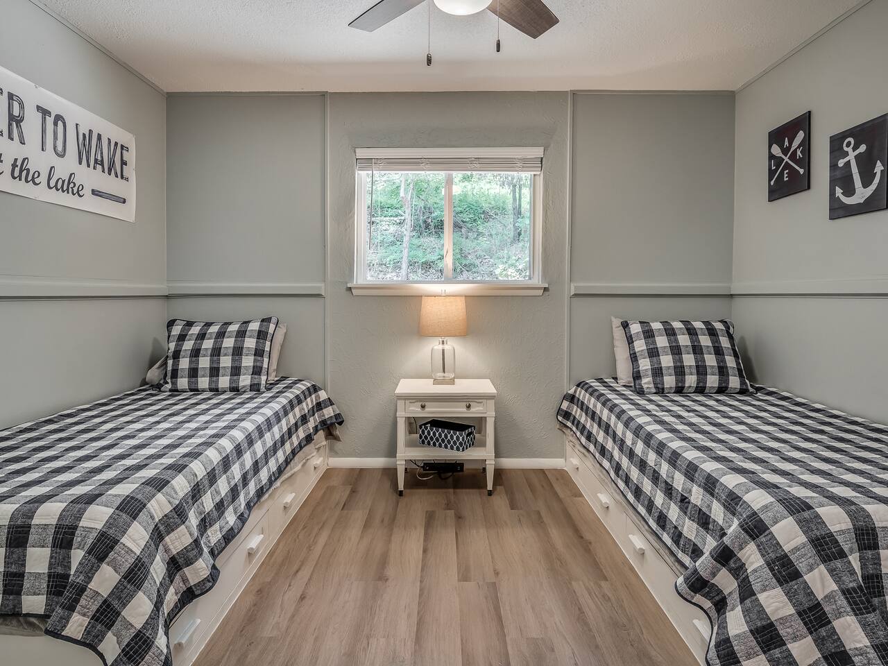 All bedrooms include a bedside table, a power strip, and lamp for each guest as well as ceiling fan, full length mirror, and a closet with box fan and extra pillows and sheets. After a couple of tight turns, there is plenty of space for boat parking and trailer parking.